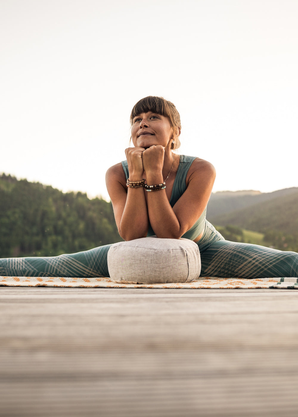 Auch wenn Du gerne im Schneider-, Lotus- oder halbem Lotussitz Platz nimmst, ist ein rundes Yogakissen eine gute Wahl. Seine Höhe ermöglicht es Dir, Deine Knie entspannt unter die Hüftgelenke sinken zu lassen.